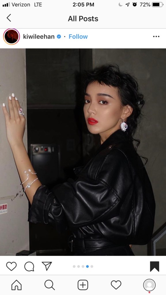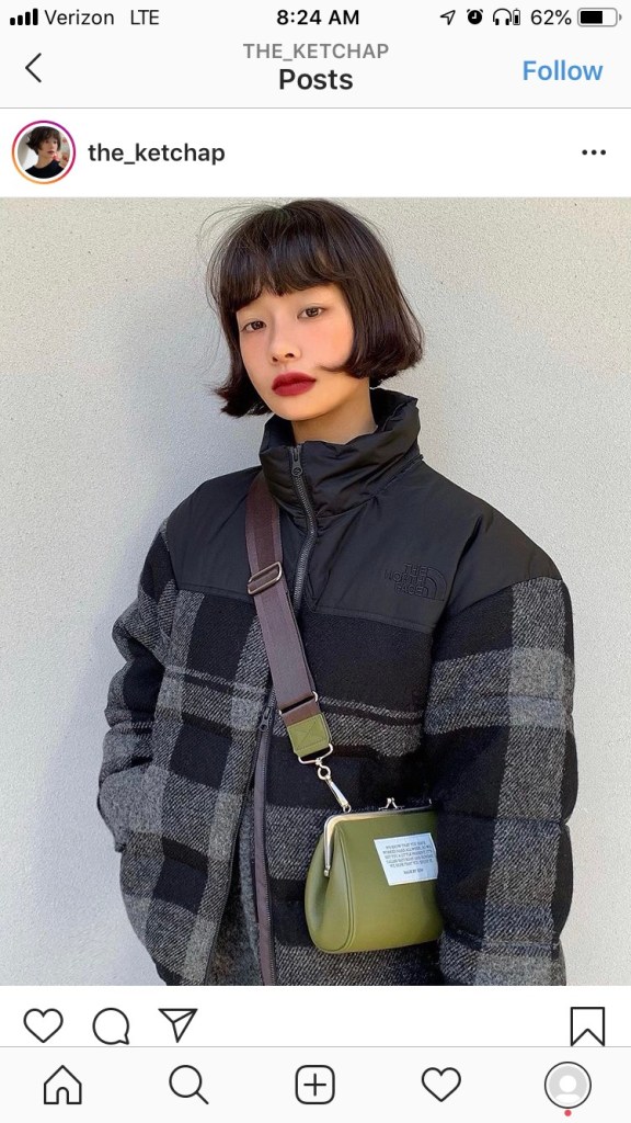 Go extra bold with choppy bangs like Japanese influencer Kiwi Lee did here. Keep the look grunge with an all black outfit and a pop of color with your bright red lip
