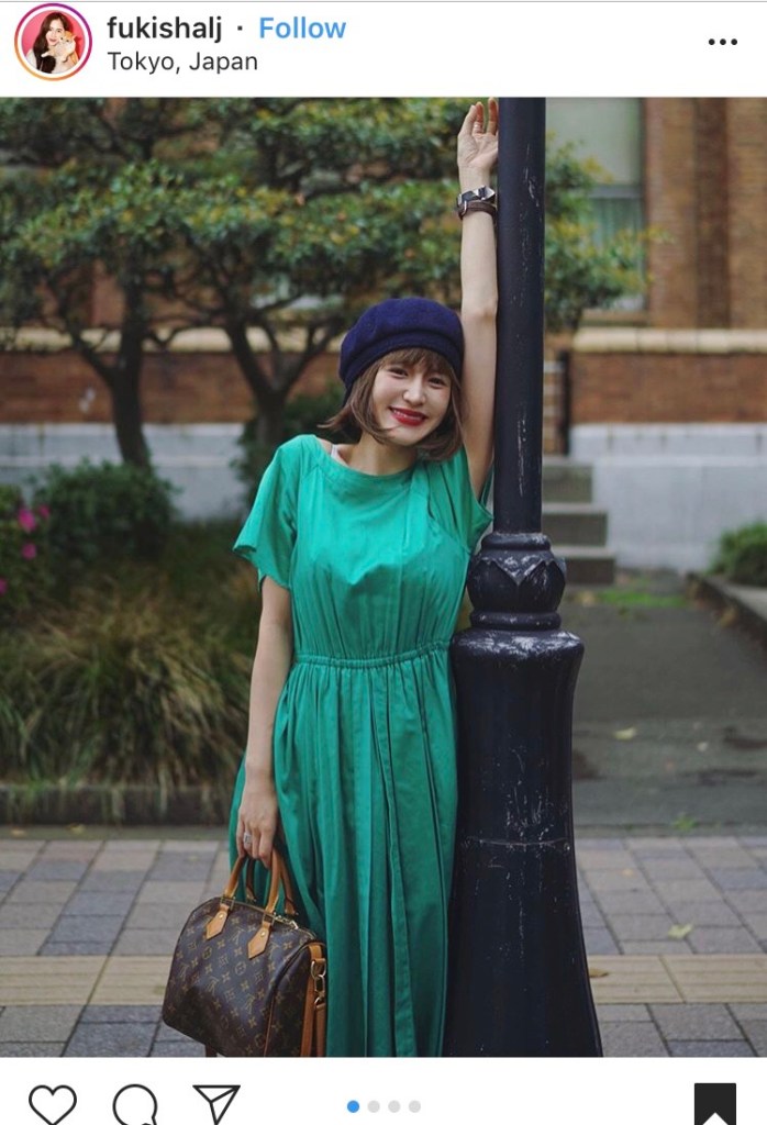 Style your bob and bangs with a bright beret and bright red lip like instagram user Cammy Fuki did here