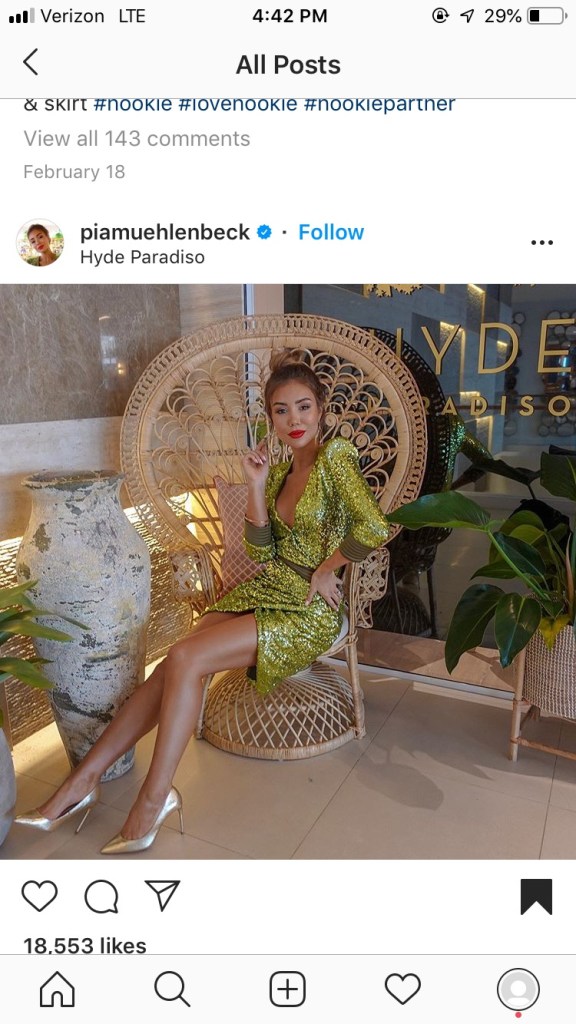 I don’t think I’ve put anything red on my body in the past 3 months. A red lip is the first makeup look I’ll be trying when things open up, and why not pair it with an open slit sequined one shoulder dress like influencer Dilya Diaz did here?